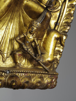 - Footnotes : Another Nepalese gilt repoussé plaque depicting the goddess Durga slaying the buffalo-demon Mahisha was sold at Bonhams, New York, 13 March 2017, lot 3050. Stylistically, a large figure of Padmanartteshvara, dated 1724 CE, has a similarly slender figural type covered by sheer garments (Bonhams, Hong Kong, 29 November 2016, lot 135). Also, compare a related panel of Ganesha formerly in the Alsdorf Collection (Pal, A Collecting Odyssey, 1997, no.67, p.58).