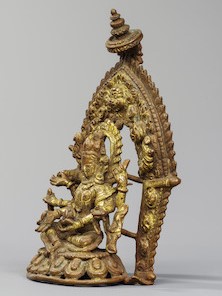 - Footnotes : A bronze figure of Indra in the David R. Nalin Collection provides an excellent stylistic comparison, being dated by inscription to 1840 CE (Vajracharya, Nepalese Seasons, 2016, p.156-7, no.50). Also compare a Garudasana sharing a similar open-work lotus base published in von Schroeder, Indo-Tibetan Bronzes, Hong Kong, 1981, p.385, no.104E.