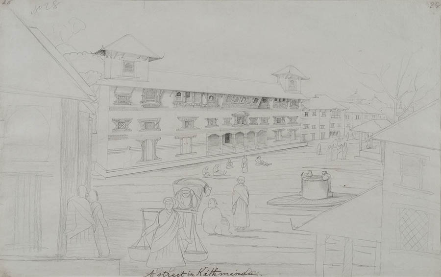 Inscribed: A street in Kathmandu. No 28.From the collection of Brian Houghton Hodgson.