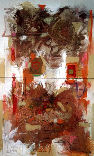 Oil, woodchip and chaff on canvas