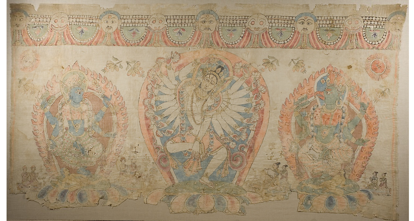 • Title : Tantric Temple Banner of a Dancing Goddess Flanked by Dakinis
