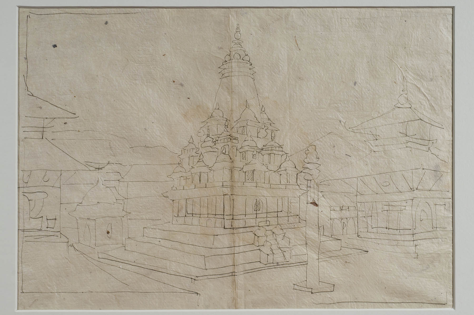 This image is a preliminary sketch for the finished drawing by Raj Man Singh: see 022.027From the collection of Brian Houghton Hodgson.