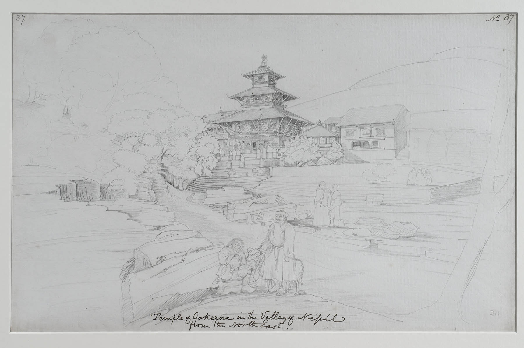 Inscribed: Temple of Gokarna in the Valley of Nepal from the North East. No 37. From the collection of Brian Houghton Hodgson.